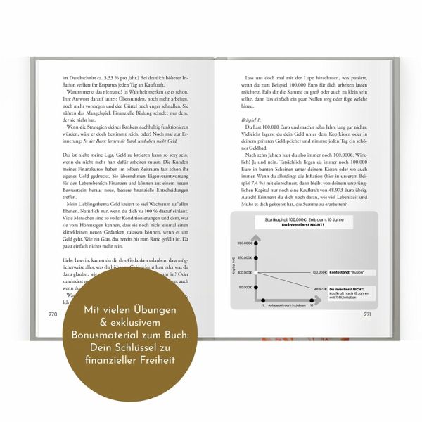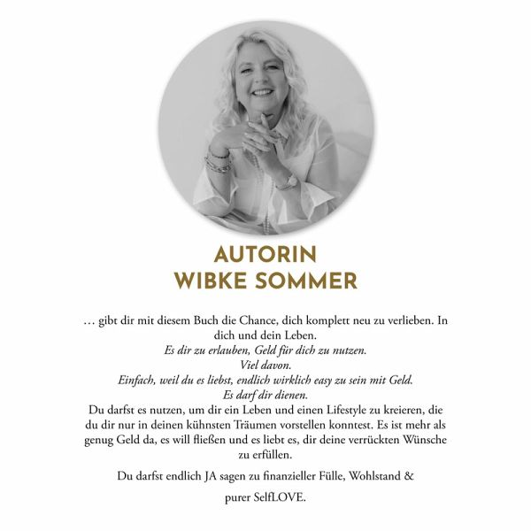 Die Autorin gibt dir mit diesem Buch die Chance, dich komplett neu zu verlieben. In dich und dein Leben. Es dir zu erlauben, Geld für dich zu nutzen. Viel davon. Einfach weil du es liebst, endlich wirklich easy zu sein mit Geld. Es darf dir dienen. Du darfst es nutzen, um dir ein Leben und einen Lifestyle zu kreieren, das du dir nur in deinen kühnsten Träumen vorstellen kannst.