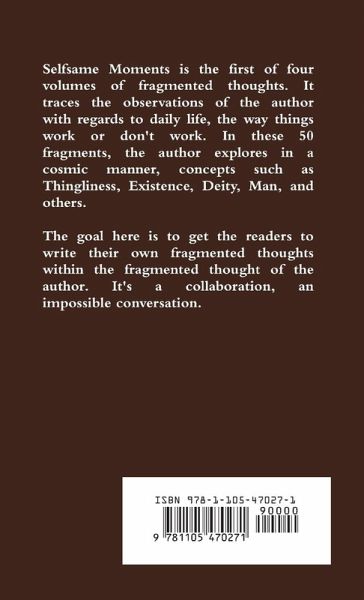 A collection of fifty fragmented ideas, inspired by the mundane, unusual observations, ruminations and experiences of daily life.