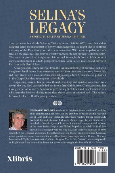 Shortly before her death, Selina of 'Selina of Sussex 1818-1886', hands her eldest daughter Ruth the manuscript of her writings, suggesting she might like to continue the story of the Page family into the next generation. With some trepidation Ruth takes up the challenge. Her story is a worthy successor to her mother's 'autobiography'. The reader is given fresh insight into life in rural Sussex, both from a child's point of view and then from an adult's perspective, when Ruth herself marries and moves to Patcham with Dan Holder. A lively, readable story emerges from the skilful combining of historical fact with imaginary detail drawn from extensive research into nineteenth century Sussex life and from Ruth's own account of her spiritual journey, edited by her son and published in the Gospel Standard subsequent to her death. Expressing many of her personal thoughts, feelings and spiritual concerns, Ruth reveals the way God graciously led her into a firm faith in Jesus Christ, sustained her through a period of severe depression, gave her eight children and enabled her to run a blacksmith's business during more than thirty years of widowhood. The author, Leonard Holder, is Ruth's great grandson.