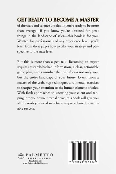 Sales professionals at any experience level can learn the secrets to a winning career. From perspective and mindset to strategy and technique, this book will show you how to break free of average and lead the pack in sales. As a sales professional, you know that to make it rain, you need a drive and tenacity that few have the stomach for. You have that motivation. So what will it take for you to break through the ceiling you've spent months or years knocking on? This is not a motivational book-you've seen plenty of those. Instead, it's about giving you practical, game-changing strategies for using your own desire to make an impact to earn your clients' trust, respect, and purchase. If you're ready to move beyond the basics toward understanding the connection between who you are and who your client is; if you're ready to break free of average and take the next steps toward your own potential, this book is for you. Get ready to become a master of the art and science of sales. You'll learn next-level strategies for: Owning your sales cycleFinding the right moment to call to action, and the right moment to waitKnowing your walkawayPreparation, planning, and executionManaging your pipeline With these and dozens of other top-of-craft strategies, all taught by a professional with decades of experience making sales connections at the highest level, this is a can't-miss book on your path to constant, sustainable success.