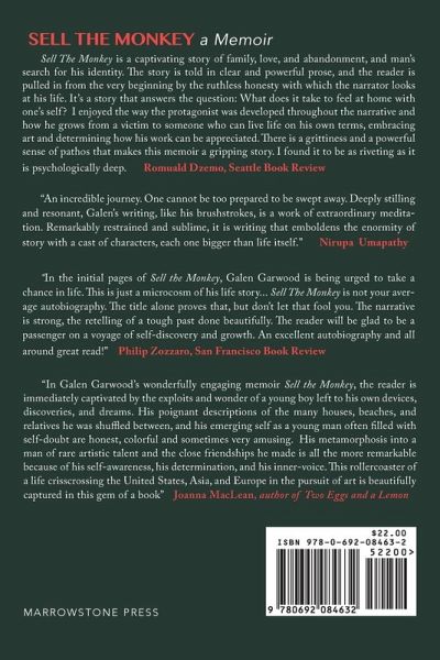 Growing up in the South during the 40s and 50s, coming of age and ‘coming out’ in the Alaskan Arctic during the 60s, maturing as an artist in the Pacific Northwest during the 70s and 80s, Galen Garwood’s SELL THE MONKEY is a fascinating memoir, one of humor and poignancy, swimming through generations of racism, homophobia, alcoholism, and uncertainty. It is an engaging chronicle of living and surviving in Ida’s World, his glamorous and talented mother, who played ragtime piano at Alaska’s legendary Malamute Saloon; it is a tale of monkeys, snakes, pigs, elephants, and insects; a story full of eccentric characters—Keoga the Snake Man, Dirty Earl, Greasy John, Mad Irene. It’s about poets and painters, friends and lovers, art and sex, loss and discovery, and a life blessed by imagination. Born and raised in Georgia, Galen Garwood has understood early on that life doesn’t just smile at us with her beauty. As a child, he’s experienced tragedy in the family with her mother’s survival of a shooting, lived through the challenges and shame of her elopement with Sam, and endured her errant ways, which eventually saw the young Galen and his siblings put into an orphanage. These are experiences that are powerful enough to leave a painful mark on the psyche of a young man. The reader follows his story as he and his siblings are ferried back to their mother, then their father, and then grandparents. Galen’s story is characterized by tumultuous moments as he journeys through adolescence and struggles to get a job in a bar in Alaska and get himself through college. His quest to make sense of his life will take him across continents to Asia, where he’d make new friends and re-discover a fascinating love for art. The most powerful moment of his life would come when he freely accepts his homosexuality. The question the reader asks is: Can he finally come to grips with himself and fully reconcile with his past, taking full control of his destiny? Sell The Monkey is a captivating story of family, love and abandonment, and man’s search for his identity. The story is told in clear and powerful prose, and the reader is pulled in from the very beginning by the ruthless honesty with which the narrator looks at his life. It’s a story that answers the question: What does it take to feel at home with one’s self? I enjoyed the way the protagonist was developed throughout the narrative and how he grows from a victim to someone who can live life on his own terms, embracing art and determining how his work can be appreciated