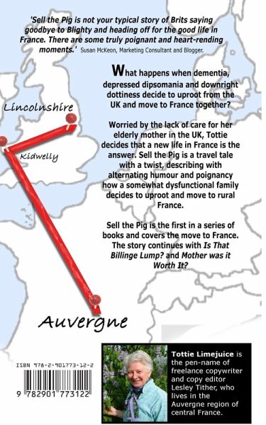 What happens when dementia, depressed dipsomania and downright dottiness decide to uproot from the UK and move to France together. Worried by the lack of care for her frail elderly mother in the UK, Tottie decides a new life elsewhere might be the answer. Sell the Pig is a travel tale with a twist, describing with alternating humour and poignancy how a somewhat dysfunctional family decide to uproot and move to rural France. Eccentric Tottie, her manic depressive alcoholic brother, their mother, whose dementia has given her an obsession with bums, and an equally elderly border collie, decide France's Auvergne is to be their new home. This is the story of what led them to make that journey.