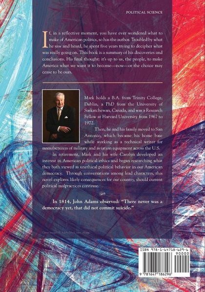 If, in a reflective moment, you have ever wondered what to make of American Politics, so has the author. Troubled by what he has seen and heard; he has spent five years trying to decipher what is really going on. This book is a summary of his discoveries and conclusions. There are those among us willing and able, at this moment, to rule America by the desires of wealth alone, without the input of the people, certainly without reference to our constitution, and absolutely without concern for the health and needs of all on the planet. The author's final thought: it's up to us, the people, to make America what we want it to become--now--or the choice may cease to be ours.