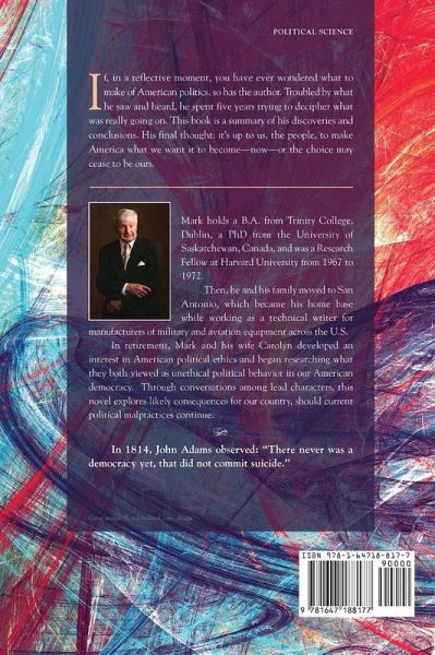 If, in a reflective moment, you have ever wondered what to make of American Politics, so has the author. Troubled by what he has seen and heard; he has spent five years trying to decipher what is really going on. This book is a summary of his discoveries and conclusions. There are those among us willing and able, at this moment, to rule America by the desires of wealth alone, without the input of the people, certainly without reference to our constitution, and absolutely without concern for the health and needs of all on the planet. The author's final thought: it's up to us, the people, to make America what we want it to become--now--or the choice may cease to be ours.