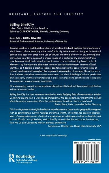 Selling EthniCity: Urban Cultural Politics in the Americas from the Conquest to Contemporary Consumer Societies; I: The Spectacular City and the Performance of Ethnicity; Introduction to Part 1 The Spectacular city and the Performance of Ethnicity; 1: Carnival Redux: Hurricane Katrina, Mardi Gras and Contemporary United States Experience of an Enduring Festival Form; 2: "What Did I Do to Be so Global and Blue?"-Blues as Commodity: Tourism, Politics of Authenticity, and Blues Clubs in Chicago Today; 3: Insurrection and Symbolic Work: Graffiti in Oaxaca (Mexico) 2006/2007 as Subversion and Artistic Politics; 4: Black Day in the White Racism and Violence in City: Sucre; II: The Use of Ethnicity in the Imagineering of Urban Landscapes; Introduction to Part II The Use of Ethnicity in the Imagineering of Urban Landscapes; 5: Urban Landscapes of Mall-ticulturality: (Retro-)Coloniality, Consumption, and Identity Politics: The Case of the San Luis Shopping Center in Quito; 6: Religion and Culture Set in Stone: A Case Study of the Jewish Community Center of Metro Detroit; 7: "Ambiguously Ethnic" in Sherman Alexie's Seattle: Re-Imagining Indigenous Identities in the Twenty-First Century; 8: Against the "Erasure of Memory" in Los Angeles City Planning: Strategies of Re-Ethnicizing LA in Digital Fiction; III: Ethnic Heritage and/or Cultural Commodification in the City; Introduction to Part III Ethnic heritage and/or cultural Commodification in the City; 9: Quito's Historic Center: Heritage of Humanity or of the Market?; 10: "Economically, We Sit on a Cultural Gold Mine": Commodified Multiculturalism and Identity Politics in New Orleans; 11: Mobilizing Ethnicity: Yucatecan Maya Professionals in Mérida and their Participation in the Cultural and Political Fields; 12: A City of Newcomers: Narratives of Ethnic Diversity in Vancouver; IV: Gentrification and the Politics of Authenticity; Introduction to Part IV Gentrification and the Politics of Authenticity; 13: (Re-)Constructing the Ethnic Neighborhood: Gentrification in the United States and the Longing for a Unique Identity 1; 14: No-Go Areas and Chic Places: Socio-Spatial Segregation and Stigma in Guadalajara; 15: Spaces of Alterity and Temporal Permanence: The Case of San Francisco's and New York's Chinatowns