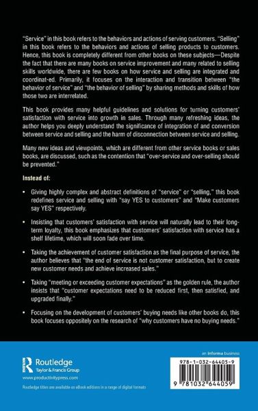 Chapter 1. The Effective Integration of Service and Selling Chapter 2. Link Service with Selling by the Customer Psychology Compass Chapter 3. Harness Customer Expectation in Service and Selling Chapter 4. Explore Customers' New Purchasing Needs During Service Delivery Chapter 5. Handle Customers' Objections When Converting from Service to Selling Chapter 6. Differentiated Service & Selling Tactics for Customers of Different Personality Types