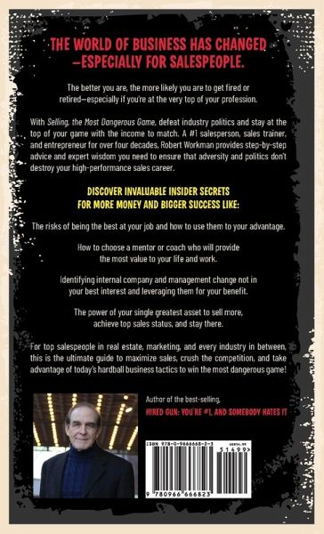 The world of business has changed - especially for salespeople. The better you are, the more likely you are to get fired or retired - especially if you're at the very top of your profession. With Selling, the Most Dangerous Game, defeat industry politics and stay at the top of your game with the income to match. A #1 salesperson, sales trainer, and entrepreneur for over four decades, Robert Workman provides step-by-step advice and expert wisdom you need to ensure that adversity and politics don't destroy your high-performance sales career. Discover invaluable insider secrets for more money and bigger success like:The risks of being the best at your job and how to use them to your advantage. How to choose a mentor or coach who will provide the most value to your life and work. A strategy for identifying internal company decisions or management change not in your best interest - and ways to leverage them for your benefit. The power of your single greatest asset to sell more, achieve top sales status, and stay there. For top salespeople in real estate, marketing, and every industry in between, this is the ultimate guide to maximize sales, crush the competition, and take advantage of today's new hardball business tactics to win the most dangerous game!