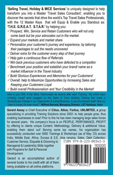 'Selling Travel, Holiday & MICE Services' is uniquely designed to help transform you into a Master 'Travel Sales Consultant', enabling you to discover the secrets that drive the world's Top Travel Sales Professionals, with the 12 Master Keys that will Equip & Enable you Standout as: 'T.H.E. G.R.E.A.T. S.T.A.R.' by helping you:Prospect, Win, Service and Retain Customers who will not only come back but be your advocates out in the market. Expand your markets and market share Personalize your customer's journey and experience, by tailoring their packages to suit the needs uncovered Deliver extra for the customer every step of their journey Help gain a continuous flow of Referrals Win back previous customers who have defected to a competitor Benchmark your position and establish your brand/ name as a market influencer in the Travel industry Build Glorious Experiences and Memories for your Customers! Overall, help to Maximize Opportunities by Increasing Sales and Keeping your Customers Loyal Build overall Professionalism and Your Credibility in the Market! Here is just ONE of the Many Testimonials we receive after each Training..."My entire team including myself were engaged on this Sales & Team Building Training that made a Revolutionary Change in our Organization & overall Business, in just one Session itself. Now my Team is hungry for even more!"...Wilfred Selvaraj, Managing Director, LGT Holidays, India