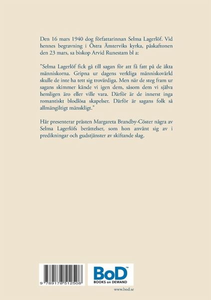 Den 16 mars 1940 dog Selma Lagerlöf. Vid hennes begravning i Östra Ämterviks kyrka den 23 mars, sa biskop Arvid Runestam bl a: "Selma Lagerlöf fick gå till sagan för att få fatt på de äkta människorna. Gripna ur dagens verkliga människovärld skulle de inte ha tett sig trovärdiga. Men när de steg fram ur sagans skimmer kände vi igen dem, såsom dem vi själva hemligen äro eller ville vara. Därför är de innerst inga romantiskt blodlösa skapelser. Därför är sagans folk så allmängiltigt mänskligt." Här presenterar nu Margareta Brandby-Cöster några av Selma Lagerlöfs berättelser, som hon använt sig av i predikningar och gudstjänster av skiftande slag.