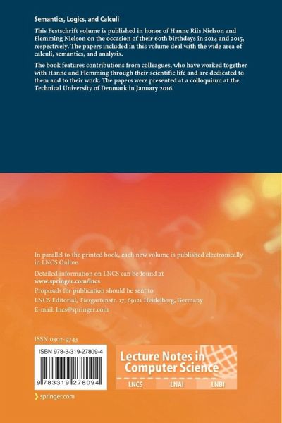 This Festschrift volume is published in honor of Hanne Riis Nielson and Flemming Nielson on the occasion of their 60th birthdays in 2014 and 2015, respectively. The papers included in this volume deal with the wide area of calculi, semantics, and analysis.