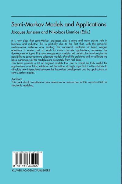 This book presents a selection of papers presented to the Second Inter national Symposium on Semi-Markov Models: Theory and Applications held in Compiegne (France) in December 1998. This international meeting had the same aim as the first one held in Brussels in 1984 : to make, fourteen years later, the state of the art in the field of semi-Markov processes and their applications, bring together researchers in this field and also to stimulate fruitful discussions. The set of the subjects of the papers presented in Compiegne has a lot of similarities with the preceding Symposium; this shows that the main fields of semi-Markov processes are now well established particularly for basic applications in Reliability and Maintenance, Biomedicine, Queue ing, Control processes and production. A growing field is the one of insurance and finance but this is not really a surprising fact as the problem of pricing derivative products represents now a crucial problem in economics and finance. For example, stochastic models can be applied to financial and insur ance models as we have to evaluate the uncertainty of the future market behavior in order, firstly, to propose different measures for important risks such as the interest risk, the risk of default or the risk of catas trophe and secondly, to describe how to act in order to optimize the situation in time. Recently, the concept of VaR (Value at Risk) was "discovered" in portfolio theory enlarging so the fundamental model of Markowitz.