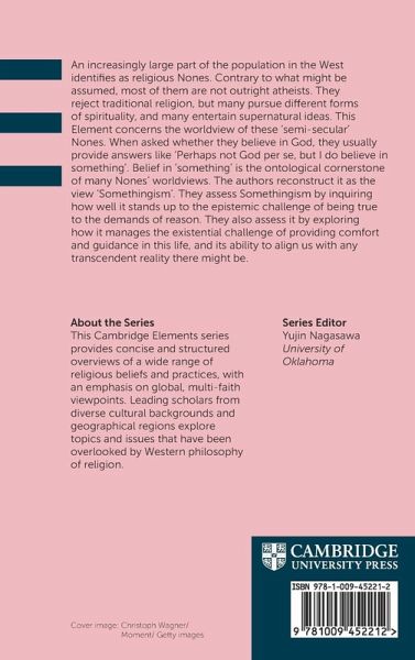 This Element concerns the worldview of 'semi-secular' Nones. When asked about whether they believe in God, they usually provide answers like 'Perhaps not God per se, but I do believe in something'. Belief in'"something' is the ontological cornerstone of many Nones' worldviews. The authors reconstruct it as the view 'Somethingism.'