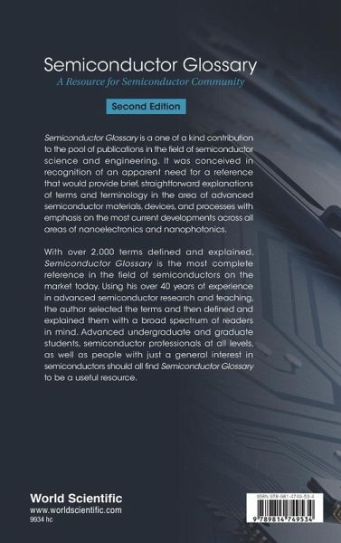 Semiconductor Glossary is a one of a kind contribution to the pool of publications in the field of semiconductor science and engineering. It was conceived in recognition of an apparent lack of references that would provide brief, straightforward explanations of terms and terminology in the area of advanced semiconductor materials, devices, and processes with emphasis on the most current developments across all areas of nanoelectronics and nanophotonics. With over 2,000 terms defined and explained, the Second Edition of Semiconductor Glossary is the most complete reference in the field of semiconductors on the market today. Using his over 40 years of experience in advanced semiconductor research and teaching, the author selected the terms and then defined and explained them with a broad spectrum of readers in mind. Advanced undergraduate and graduate students, semiconductor professionals at all levels, as well as people with just a general interest in semiconductors should all find Semiconductor Glossary to be a useful resource.