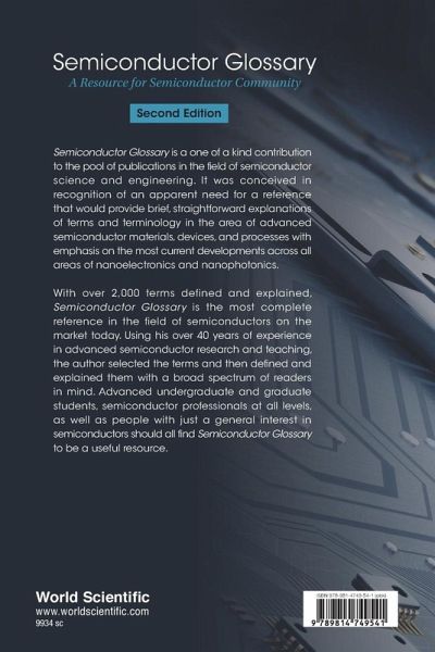 Semiconductor Glossary is a one of a kind contribution to the pool of publications in the field of semiconductor science and engineering. It was conceived in recognition of an apparent lack of references that would provide brief, straightforward explanations of terms and terminology in the area of advanced semiconductor materials, devices, and processes with emphasis on the most current developments across all areas of nanoelectronics and nanophotonics. With over 2,000 terms defined and explained, the Second Edition of Semiconductor Glossary is the most complete reference in the field of semiconductors on the market today. Using his over 40 years of experience in advanced semiconductor research and teaching, the author selected the terms and then defined and explained them with a broad spectrum of readers in mind. Advanced undergraduate and graduate students, semiconductor professionals at all levels, as well as people with just a general interest in semiconductors should all find Semiconductor Glossary to be a useful resource.
