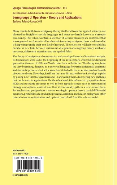 Many results, both from semi group theory itself and from the applied sciences, are phrased in discipline-specific languages and hence are hardly known to a broader community. This volume contains a selection of lectures presented at a conference that was organised as a forum for all mathematicians using semi group theory to learn what is happening outside their own field of research. The collection will help to establish a number of new links between various sub-disciplines of semigroup theory, stochastic processes, differential equations and the applied fields.