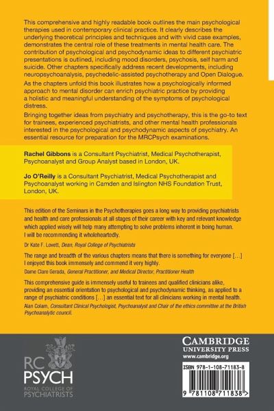 A highly readable and comprehensive account of the main forms of psychological therapies, their techniques and theoretical underpinnings. The psychological aspects of a bio-psycho-social approach to psychiatry are described with clear case examples. Relevant to all psychiatrists, mental health practitioners, and trainees preparing for exams.