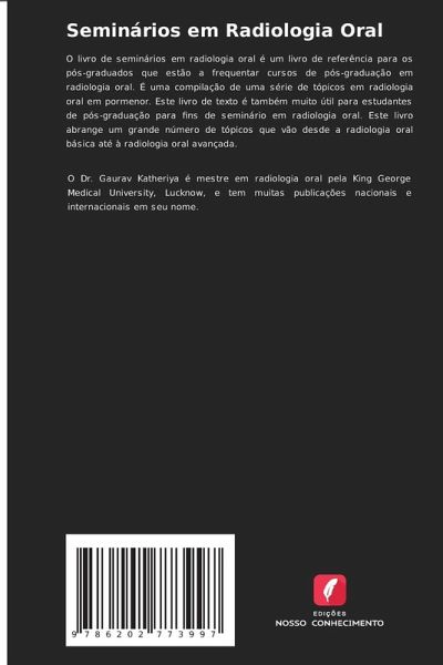 O livro de seminários em radiologia oral é um livro de referência para os pós-graduados que estão a frequentar cursos de pós-graduação em radiologia oral. É uma compilação de uma série de tópicos em radiologia oral em pormenor. Este livro de texto é também muito útil para estudantes de pós-graduação para fins de seminário em radiologia oral. Este livro abrange um grande número de tópicos que vão desde a radiologia oral básica até à radiologia oral avançada.