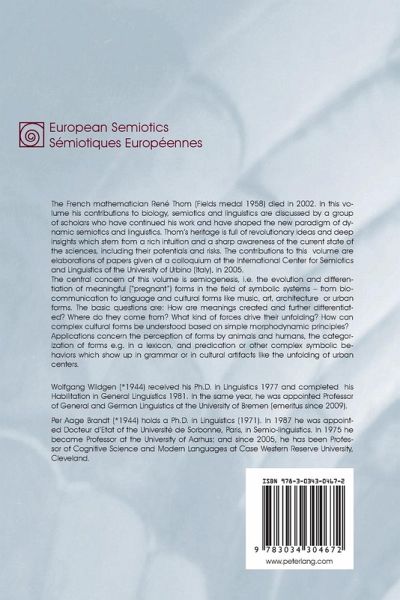 Contents: Wolfgang Wildgen:Introduction - Marc Chaperon: Catastrophes. A testimony - Svend Østergaard: René Thom: The Recognition of Forms. An Apologia for Realism - Peer F. Bundgaard/Frederik Stjernfelt: René Thom's Semiotics and Its Sources-Wolfgang Wildgen: Thom's Theory of « Saillance » and « Prégnance » and Modern Evolutionary Linguistics - Isabel Marcos: Urban Universals - Ángel López-García: Catastrophes: What are we talking about? - Jean Petitot :« Le hiatus entre le logique et le morphologique ». Prédication et Perception - Per Aage Brandt : René Thom - Prégnances et catastrophes. Pour une phénoménologie sémio-cognitive.