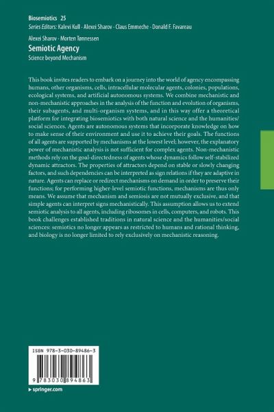 This book invites readers to embark on a journey into the world of agency encompassing humans, other organisms, cells, intracellular molecular agents, colonies, populations, ecological systems, and artificial autonomous systems. We combine mechanistic and non-mechanistic approaches in the analysis of the function and evolution of organisms, their subagents, and multi-organism systems, and in this way offer a theoretical platform for integrating biosemiotics with both natural science and the humanities/social sciences. Agents are autonomous systems that incorporate knowledge on how to make sense of their environment and use it to achieve their goals. The functions of all agents are supported by mechanisms at the lowest level; however, the explanatory power of mechanistic analysis is not sufficient for complex agents. Non-mechanistic methods rely on the goal-directedness of agents whose dynamics follow self-stabilized dynamic attractors. The properties of attractors depend on stable or slowly changing factors, and such dependencies can be interpreted as sign relations if they are adaptive in nature. Agents can replace or redirect mechanisms on demand in order to preserve their functions; for performing higher-level semiotic functions, mechanisms are thus only means. We assume that mechanism and semiosis are not mutually exclusive, and that simple agents can interpret signs mechanistically. This assumption allows us to extend semiotic analysis to all agents, including ribosomes in cells, computers, and robots. This book challenges established traditions in natural science and the humanities/social sciences: semiotics no longer appears as restricted to humans and rational thinking, and biology is no longer limited to rely exclusively on mechanistic reasoning.