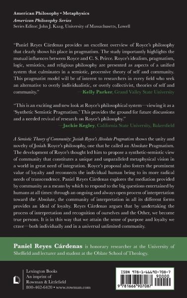 Paniel Reyes Cárdenas provides a novel reading of Josiah Royce's Absolute Pragmatism in the context of the nineteenth-century origins of Classical Pragmatism. Royce's proposal leads to an integrated philosophy that unfolds the synthetic-semiotic theory of community.