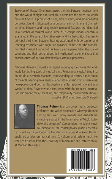 Semiotics of Musical Time investigates the link between musical time and the world of signs and symbols. It examines the extent to which musical time is a product of signs, sign systems, and sign-oriented behavior. Sound is discussed as a potential sign of time and of musical time. Inherent and recognizable temporal features are identified in a number of musical works. Time as a compositional concern is examined in the case of Igor Stravinsky and Karlheinz Stockhausen. A principal distinction between hearing associated with perception and listening associated with cognition provides the basis for the proposition that musical time is both unheard and imperceptible. The role of concepts, and their designations, is investigated to demonstrate that consciousness of musical time involves semiotic processes.