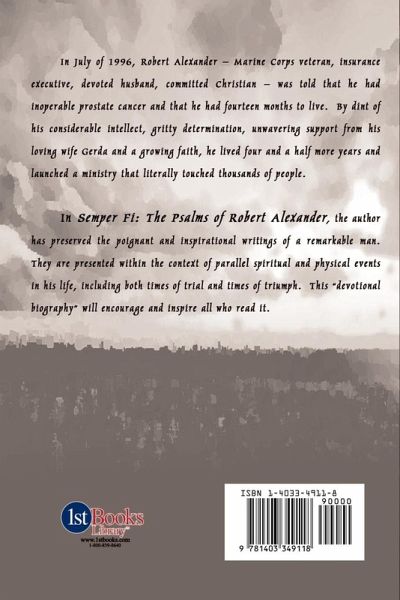 Semper Fi: The Psalms of Robert Alexander, by Erik Pettersen: a devotional biography which presents the poignant and inspirational writings of a terminally ill former Marine, within the context of parallel spiritual and physical events in his life.