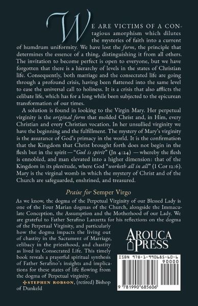 We are victims of a contagious amorphism which dilutes the mysteries of faith into a current of humdrum uniformity. We have lost the form, the principle that determines the essence of a thing, distinguishing it from all others. The invitation to become perfect is open to everyone, but we have forgotten that there is a hierarchy of levels in the states of Christian life. Consequently, both marriage and the consecrated life are going through a profound crisis, having been flattened into the same level to ease the universal call to holiness. It is a crisis that also afflicts the celibate life, which has for a long while been subjected to the epicurean transformation of our times. A solution is found in looking to the Virgin Mary. Her perpetual virginity is the original form that molded Christ and, in Him, every Christian and every Christian vocation. In her unsullied virginity we have the beginning and the fulfillment. The mystery of Mary's virginity is the assurance of God's primacy in the world. It is the confirmation that the Kingdom that Christ brought forth does not begin in the flesh but in the spirit-"God is spirit" (Jn 4:24) -whereby the flesh is ennobled, and man elevated into a higher dimension: that of the Kingdom in its plenitude, where God "worketh all in all" (1 Cor 12:6). Mary is the virginal womb in which the mystery of Christ and of the Church are safeguarded, enshrined, and treasured.