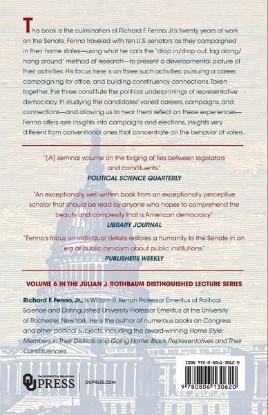 This is a book about the politics of representative democracy, written from the perspective of the politicians who make it work. Typically, political scientists study campaigns from the perspective of the voter and for the purpose of explaining election outcomes. But campaigns also need to be studied from the perspective of the candidate, for the purpose of understanding representation. Richard F. Fenno, Jr., traveled with ten U.S. senators as they campaigned in their home states-using what he calls the ""drop in/drop out, tag along/hang around"" method of research-to present a developmental picture of their activities. His focus here is on three such activities - pursuing a career, campaigning for office, and building constituency connections. Taken together, the three constitute the political underpinnings of representative democracy. Fenno describes the achievement, the testing, and the maintenance of representational relationships. He examines challengers and incumbents, winners and losers, and motivations, strategies, and behaviors; and he reports on differences, similarities, and patterns among them. In studying the candidates' varied careers, campaigns, and connections in stages and sequences and in depth - and in allowing us to hear them reflect on these experiences - Fenno has been able to offer rare insights into campaigns and elections, insights very different from conventional ones that concentrate on the behavior of voters. In its focus on the process of representative democracy, Senators on the Campaign Trail offers a rich, rounded, developmental view of some high-level individuals who work at the business of representation. For scholars, the book suggests some qualitative confirmation and added stimulation in forging generalizations about politicians. For citizens, the book argues for replacing the conventional blanket condemnation of our politicians, so prevalent today, with more discriminating judgments about what they do, and why and to what purpose they do it.