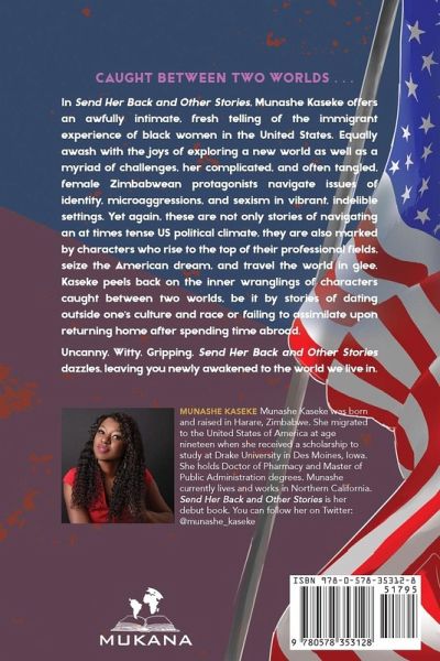 In Send Her Back and other stories, Munashe Kaseke offers an awfully intimate, fresh telling of the immigrant Black woman experience in the United States, equally awash with a myriad of challenges as well as the joys of exploring a new world. With sumptuous candor, her complicated, and often tangled, female Zimbabwean protagonists navigate issues of identity, microaggressions, and sexism in vibrant and indelible settings, and at times a tense US political climate. Yet again, these are not only stories of overcoming, they're also marked by characters who've risen to the top of their professional fields, seized the American dream, and who travel the world in glee. Kaseke peels back on the inner wranglings of characters caught between two worlds be it by stories of dating outside one's culture and race or failing to assimilate upon returning home after spending time abroad. Uncanny. Hilarious. Witty. Gripping. Send Her Back and Other Stories dazzles, leaving you newly awakened to the world we live in.