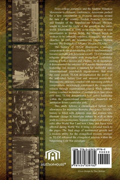 From college campuses and the Student Volunteer Movement to elaborate conferences, Americans pushed for a new commitment to overseas missions around the turn of the century. Fredrik Franson, revivalist and founder of the Scandinavian Alliance Mission, sought to Send the Light of the gospel to the entire world. Established in 1890, as an organization to send missionaries to foreign fields, the Mission urged its workers to be culturally sensitive, evangelize, and plant churches. In 1949, the Scandinavian Alliance Mission became The Evangelical Alliance Mission (TEAM). The history of TEAM illuminates a missing component in our understanding of how fundamentalism became embedded in American society. TEAM balanced religious distinctiveness with evangelical conformity, making it both a success and a failure. As an institution, it demonstrated the outcome of visionary fundamentalist leadership and became a standard for successful non-denominational parachurch organizations. But over the same period, TEAM de-emphasized the power of the individual before God and stressed practicality. Bureaucratic structure, coupled with increasing political compromises, increasingly constrained the evangelical mission through organizational control. While scholars portray a natural inclination of institutions to lose vision over time, TEAM demonstrates how active leadership within the organizational environment channeled the institution down a particular path. This study follows a chronological format with allowances for important thematic divergence. TEAM's history is filled with dynamic men and women who illustrate change in American culture as well as their work in overseas missions. Separate chapters on women's roles after World War I and how China and Japan were affected during World War II bring a personal touch to the pages. The final stage of institutional growth and a modern utility for the evangelical mission emerges as TEAM reframed the evangelical mission within