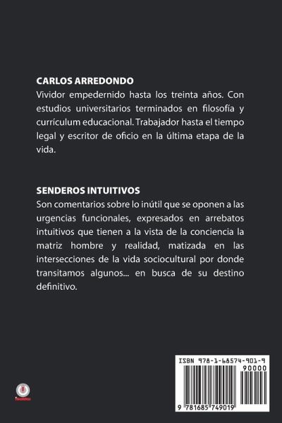 SENDEROS INTUITIVOS Son comentarios sobre lo inútil que se oponen a las urgencias funcionales, expresados en arrebatos intuitivos que tienen a la vista de la conciencia la matriz hombre y realidad, matizada en las intersecciones de la vida sociocultural por donde transitamos algunos... en busca de su destino definitivo.