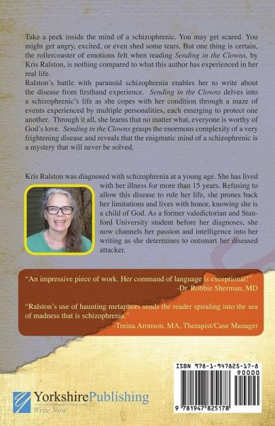 Take a peek inside the mind of a schizophrenic. You may get scared. You might get angry, excited, or even shed some tears. But one thing is certain, the rollercoaster of emotions felt when reading Sending in the Clowns, by Kris Ralston, is nothing compared to what this author has experienced in her real life. Ralstons battle with paranoid schizophrenia enables her to write about the disease from firsthand experience. Sending in the Clowns delves into a schizophrenics life as she copes with her condition through a maze of events experienced by multiple personalities, each emerging to protect one another. Through it all, she learns that no matter what, everyone is worthy of Gods love. Sending in the Clowns grasps the enormous complexity of a very frightening disease and reveals that the enigmatic mind of a schizophrenic is a mystery that will never be solved.