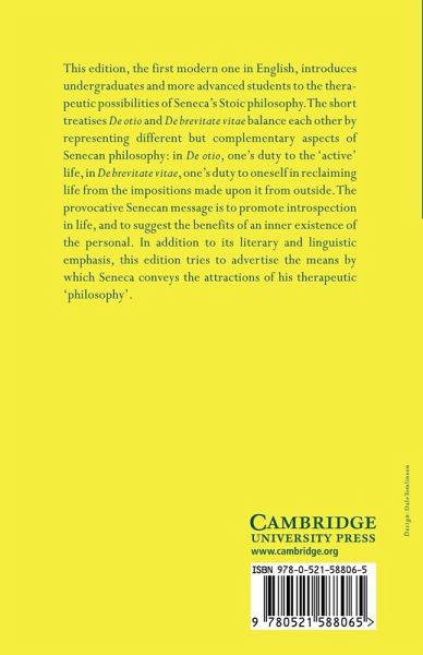 This edition of Seneca's De otio and De brevitate vitae introduces students to the complex artistic method and provocative message of Senecan philosophy. It emphasizes the relevance of both works to modern reflection on the claims of the 'balanced' life and on the complex relationship of the individual to society.
