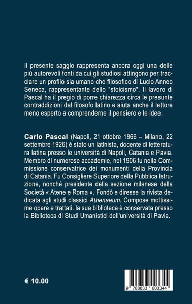 Il presente saggio rappresenta ancora oggi una delle più autorevoli fonti da cui gli studiosi attingono per tracciare un profilo sia umano che filosofico di Lucio Anneo Seneca, rappresentante dello "stoicismo". Il lavoro di Pascal ha il pregio di porre chiarezza circa le presunte contraddizioni del filosofo latino e aiuta anche il lettore meno esperto a comprenderne il pensiero e le idee.