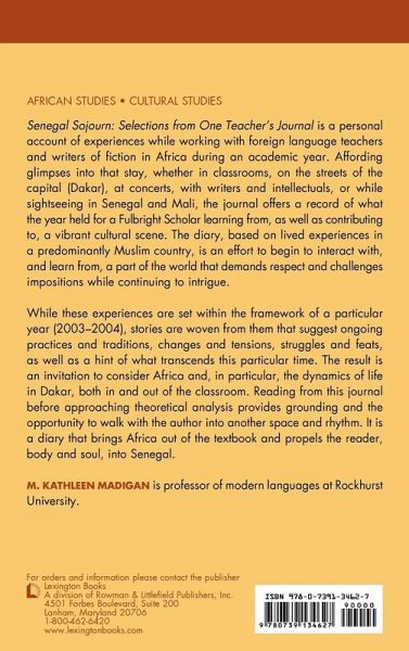 Senegal Sojourn: Selections from One Teacher's Journal is a personal account of everyday interaction while collaborating for a year with foreign language teachers and writers of fiction in Dakar. A unique and passionate contribution to interdisciplinary conversations, the journal is the record of one teacher's encounters with African education, politics, languages, etc. Traditions and tensions, practices and yearnings, struggles and feats are described, along with literature, religion, film, music, and art which transcend timeframes.