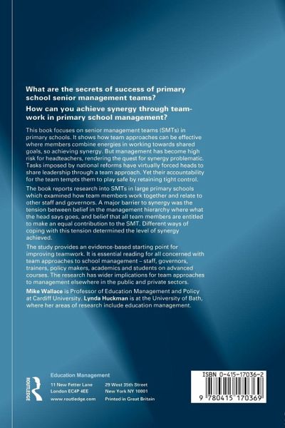 Recent years have seen dramatic developments in the way schools are structured and much greater emphasis placed on managing your school effectively. Every education professional knows how demanding these new methods can be, but they can also reinforce a sense of purpose and control. Senior Management Teams in Primary Schools looks at how positive teamwork can be achieved within your school and illustrates the benefits it brings. Most teachers involved in managing their school will recognise the situations detailed in the case studies contained in the book - the forceful head, the overworked middle managers, the meetings that try to wade through the mountains of administration that face the modern teacher. You will find practical advice, clear guidelines, case studies from schools that are involved in the process of good practice. This book will organise you in your approach and ensure that you reap the benefits of teamwork while avoiding the pitfalls.
