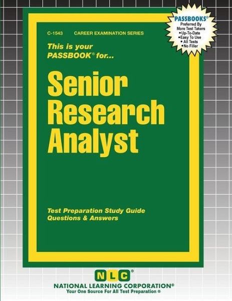 The Senior Research Analyst Passbook(R) prepares you for your test by allowing you to take practice exams in the subjects you need to study. It provides hundreds of questions and answers in the areas that will likely be covered on your upcoming exam, including but not limited to: descriptive and inferential statistics; research and experimental design; understanding and interpreting written material; preparing written material; supervision; and more.