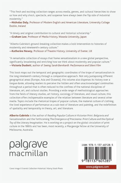Introduction: "Sensationalism and the Genealogy of Modernity: Transnational Currents, Intermedial Trajectories. A Global Nineteenth-Century Approach".- I. Sensational Tactics in the Nineteenth-Century.- James Brophy, "Irony and Popular Politics in Germany, 1800-1850".- Stefanie Lethbridge, "The Horror of Clothing and the Clothing of Horror: Material and Meaning in Gothic and Sensation Fiction".- Anthony Laube, "Adelaide, Sensationalism and the Development of New Journalism in the Early History of the South Australian Press".- Efrat Pashut, "Urban Perils and the Sensational Bicycle: Text-Image Dynamics in the Victorian Magazine Cycling, 1894-96".- II. Transmedial Trajectories: the Vanishing Act of Performance.- Hélène Valance, "Destructive Re-creations: Spectacles of Urban Destruction in Turn-of-the-Century United States".- Matthieu Letourneux, "The Magician's Box of Tricks: Fantômas, Popular Literature, and the the Spectacular imagination".- Katharina Rein, "Sawing People in Half: Sensationalist Magic Tricks and the Gendered Space of Performance in the Early Twentieth Century".- Sabine Müller, "Sensational Voices. Premodern Theatricality, Early Cinema, and the Transformation of the Public Sphere in Fin-de-siècle Vienna".- III. Visualizing the space of industrial modernity.- Michael Devine, "The Whole Thing (and Other Things): from Panorama to Attraction in Stephen Crane's 'The Open Boat,' Ashcan Painting, and Early Cinema".- Ester Coen, "Urban Metaphysics versus Metropolitan Dynamisms: The Italian Vision before WW1".- Anat Messing Marcus, "Spatiality and Temporality in Benjamin and Adorno".- Aubrey Tang, "The Sensibilities of Semicolonial Shanghai: A Phenomenological Study of the Short Stories by Liu Na'ou".- Notes on Contributors.- Bibliography.- Index