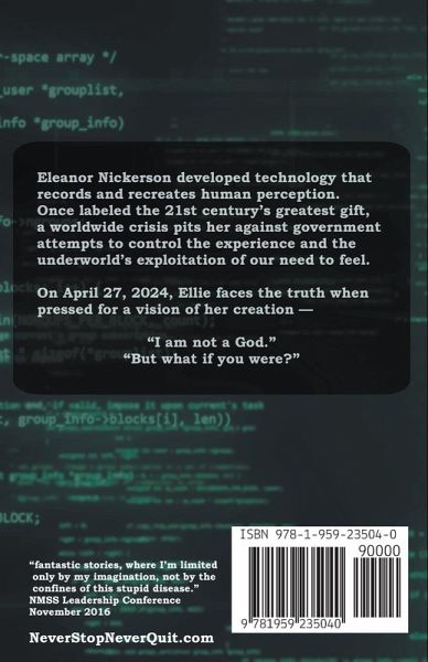 Eleanor Nickerson developed technology that records and recreates human perception. Once labeled the 21st century's greatest gift, a worldwide crisis pits her against government attempts to control the experience and the underworld's exploitation of our need to feel. On April 27, 2024, Ellie faces the truth when pressed for a vision of her creation - "I am not a God." "But what if you were?" This psychological thriller creates a bounty of magical realism that stretches the bounds of actuality while exploiting Ellie's struggles between conflicting hierarchies of power. Sensations weaves worlds…mehr