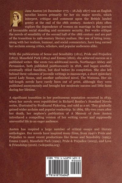 Jane Austen, born on December 16, 1775, in Steventon, Hampshire, was the seventh of eight children in a close-knit family. Her father, Reverend George Austen, served as the rector of the local Anglican parish, providing a stimulating intellectual environment. Austen's education was primarily conducted at home, supplemented by brief formal schooling, fostering her early passion for reading and writing.In her early twenties, Austen began crafting novels that offered keen insights into the British landed gentry of the late 18th century. Her works, including Sense & Sensibility (1811), Pride and Prejudice (1813), and Emma (1815), are celebrated for their wit, social commentary, and exploration of women's dependence on marriage for social standing and economic security. Despite the enduring popularity of her novels, Austen published them anonymously during her lifetime, gaining modest recognition.Austen's health began to decline in early 1816, leading to her death on July 18, 1817, at the age of 41. The exact cause of her illness remains uncertain, with theories ranging from Addison's disease to Hodgkin's lymphoma. Posthumously, her novels have garnered immense acclaim, solidifying her status as one of the most influential figures in English literature.