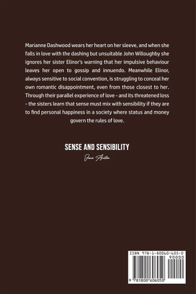 Do you want to read Sense and Sensibility? If so then keep reading... Marianne Dashwood wears her heart on her sleeve, and when she falls in love with the dashing but unsuitable John Willoughby she ignores her sister Elinor's warning that her impulsive behaviour leaves her open to gossip and innuendo. Meanwhile Elinor, always sensitive to social convention, is struggling to conceal her own romantic disappointment, even from those closest to her. Through their parallel experience of love - and its threatened loss - the sisters learn that sense must mix with sensibility if they are to find personal happiness in a society where status and money govern the rules of love. What are you waiting for Sense and Sensibility is one click away, select the "Buy Now" button in the top right corner NOW!