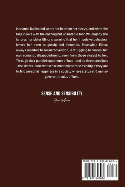 Do you want to read Sense and Sensibility? If so then keep reading... Marianne Dashwood wears her heart on her sleeve, and when she falls in love with the dashing but unsuitable John Willoughby she ignores her sister Elinor's warning that her impulsive behaviour leaves her open to gossip and innuendo. Meanwhile Elinor, always sensitive to social convention, is struggling to conceal her own romantic disappointment, even from those closest to her. Through their parallel experience of love - and its threatened loss - the sisters learn that sense must mix with sensibility if they are to find personal happiness in a society where status and money govern the rules of love. What are you waiting for Sense and Sensibility is one click away, select the "Buy Now" button in the top right corner NOW!
