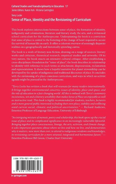 This book explores intersections between sense of place, the formation of identity, indigeneity and colonisation, literature and literary study, the arts, and a revisioned school curriculum for the Anthropocene. Underpinning the book is a conviction that sense of place is central to the fostering of the change of heart required to secure the survival of human life on earth. It offers a coherent overview of seemingly disparate realities on a geographically and historically sprawling canvas.