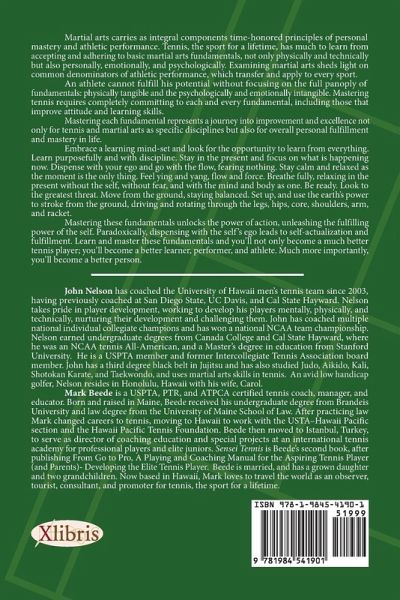 Martial arts carries as integral components time-honored principles of personal mastery and athletic performance. Tennis, the sport for a lifetime, has much to learn from accepting and adhering to basic martial arts fundamentals, not only physically and technically but also personally, emotionally, and psychologically. Examining martial arts sheds light on common denominators of athletic performance, which transfer and apply to every sport. An athlete cannot fulfill his potential without focusing on the full panoply of fundamentals: physically tangible and the psychologically and emotionally intangible. Mastering tennis requires completely committing to each and every fundamental, including those that improve attitude and learning skills. Mastering each fundamental represents a journey into improvement and excellence not only for tennis and martial arts as specific disciplines but also for overall personal fulfillment and mastery in life. Embrace a learning mind-set and look for the opportunity to learn from everything. Learn purposefully and with discipline. Stay in the present and focus on what is happening now. Dispense with your ego and go with the flow, fearing nothing. Stay calm and relaxed as the moment is the only thing. Feel yin and yang, flow and force. Breathe fully, relaxing in the present without the self, without fear, and with the mind and body as one. Be ready. Look to the greatest threat. Move from the ground, staying balanced. Set up, and use the earths power to stroke from the ground, driving and rotating through the legs, hips, core, shoulders, arm, and racket. Mastering these fundamentals unlocks the power of action, unleashing the fulfilling power of the self. Paradoxically, dispensing with the selfs ego leads to self-actualization and fulfillment. Learn and master these fundamentals and youll not only become a much better tennis player; youll become a better learner, performer, and athlete. Much more importantly, youll become a better person.