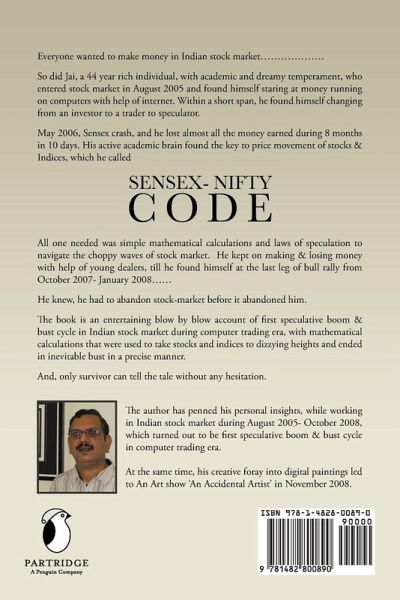 Everyone wanted to make money in Indian stock market................... So did Jai, a 44 year rich individual, with academic and dreamy temperament, who entered stock market in August 2005 and found himself staring at money running on computers with help of internet...... Within a short span, he found himself changing from an investor to a trader to speculator. May 2006, Sensex crash, and he lost almost all the money earned during 8 months in 10 days. His active academic brain found the key to price movement of stocks & Idices , which he called Sensex - Nifty code All one needed was simple mathematical calculations and laws of speculation to navigate the choppy waves of stock market. He kept on making & losing money with help of young dealers, till he found himself at the last leg of bull rally from October 2007- January 2008...... He knew, he had to abandon stock-market before it abandoned him. The book is an entertaining blow by blow account of first speculative boom & bust cycle in Indian stock market during computer trading era, with mathematical calculations that were used to take stocks and indices to dizzying heights and ended in inevitable bust in a precise manner. And, only survivor can tell the tale without any hesitation.
