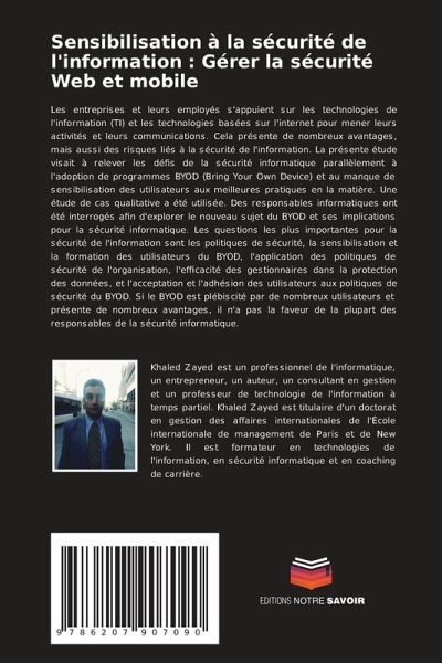 Les entreprises et leurs employés s'appuient sur les technologies de l'information (TI) et les technologies basées sur l'internet pour mener leurs activités et leurs communications. Cela présente de nombreux avantages, mais aussi des risques liés à la sécurité de l'information. La présente étude visait à relever les défis de la sécurité informatique parallèlement à l'adoption de programmes BYOD (Bring Your Own Device) et au manque de sensibilisation des utilisateurs aux meilleures pratiques en la matière. Une étude de cas qualitative a été utilisée. Des responsables informatiques ont été interrogés afin d'explorer le nouveau sujet du BYOD et ses implications pour la sécurité informatique. Les questions les plus importantes pour la sécurité de l'information sont les politiques de sécurité, la sensibilisation et la formation des utilisateurs du BYOD, l'application des politiques de sécurité de l'organisation, l'efficacité des gestionnaires dans la protection des données, et l'acceptation et l'adhésion des utilisateurs aux politiques de sécurité du BYOD. Si le BYOD est plébiscité par de nombreux utilisateurs et présente de nombreux avantages, il n'a pas la faveur de la plupart des responsables de la sécurité informatique.