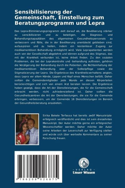 Das Lepra-Eliminierungsprogramm zielt darauf ab, die Bevölkerung stärker zu sensibilisieren und zu beteiligen, die Diagnose- und Behandlungskapazitäten des allgemeinen Gesundheitspersonals zu verbessern und Fälle, die in der Bevölkerung unentdeckt geblieben sind, aufzuspüren und zu heilen, indem ein kostenloser Zugang zur medikamentösen Behandlung ermöglicht wird. Viele Leprapatienten werden auch von der Gesellschaft abgelehnt und können aufgrund des Stigmas, das mit der Krankheit verbunden ist, keine Arbeit finden. Zu den sozialen Problemen, die bei der Leprakontrolle und -behandlung auftreten, gehören die Verzögerung der Behandlung durch die Patienten, die Nichteinhaltung der medikamentösen Behandlung oder der Selbstpflege sowie die Stigmatisierung der Lepra. Die Ergebnisse des Krankheitsverhaltens zeigten, dass Lepra vor allem Hände, Lippen und Kopf eines Menschen befällt. Daher sollten die Gemeindemitglieder jede Wunde an diesen Körperteilen berücksichtigen und sich von einemArzt beraten lassen. Die Ergebnisse haben gezeigt, dass die Art der Dienstleistungen, die für die Gemeinschaft erbracht werden, nicht zufriedenstellend ist. Daher sollten die Gesundheitszentren die Art der Dienstleistungen, die sie für die Gemeinde erbringen, verbessern, um der Gemeinde 16 Dienstleistungen im Bereich der Gesundheitsberatung anzubieten.