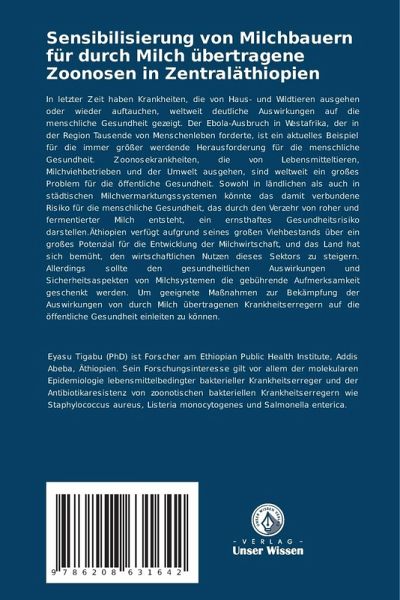 In letzter Zeit haben Krankheiten, die von Haus- und Wildtieren ausgehen oder wieder auftauchen, weltweit deutliche Auswirkungen auf die menschliche Gesundheit gezeigt. Der Ebola-Ausbruch in Westafrika, der in der Region Tausende von Menschenleben forderte, ist ein aktuelles Beispiel für die immer größer werdende Herausforderung für die menschliche Gesundheit. Zoonosekrankheiten, die von Lebensmitteltieren, Milchviehbetrieben und der Umwelt ausgehen, sind weltweit ein großes Problem für die öffentliche Gesundheit. Sowohl in ländlichen als auch in städtischen Milchvermarktungssystemen könnte das damit verbundene Risiko für die menschliche Gesundheit, das durch den Verzehr von roher und fermentierter Milch entsteht, ein ernsthaftes Gesundheitsrisiko darstellen.Äthiopien verfügt aufgrund seines großen Viehbestands über ein großes Potenzial für die Entwicklung der Milchwirtschaft, und das Land hat sich bemüht, den wirtschaftlichen Nutzen dieses Sektors zu steigern. Allerdings sollte den gesundheitlichen Auswirkungen und Sicherheitsaspekten von Milchsystemen die gebührende Aufmerksamkeit geschenkt werden. Um geeignete Maßnahmen zur Bekämpfung der Auswirkungen von durch Milch übertragenen Krankheitserregern auf die öffentliche Gesundheit einleiten zu können.