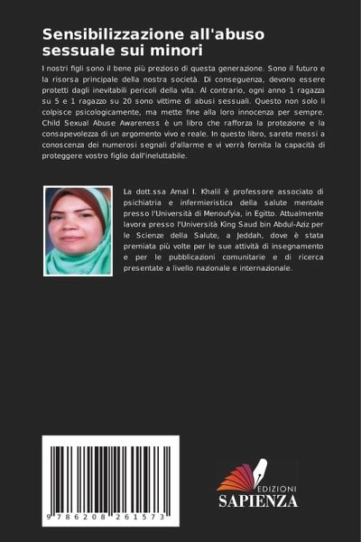 I nostri figli sono il bene più prezioso di questa generazione. Sono il futuro e la risorsa principale della nostra società. Di conseguenza, devono essere protetti dagli inevitabili pericoli della vita. Al contrario, ogni anno 1 ragazza su 5 e 1 ragazzo su 20 sono vittime di abusi sessuali. Questo non solo li colpisce psicologicamente, ma mette fine alla loro innocenza per sempre. Child Sexual Abuse Awareness è un libro che rafforza la protezione e la consapevolezza di un argomento vivo e reale. In questo libro, sarete messi a conoscenza dei numerosi segnali d'allarme e vi verrà fornita la capacità di proteggere vostro figlio dall'ineluttabile.