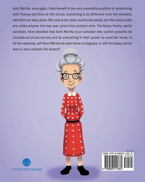 Aunt Martha, once again, finds herself in the very unsensible position of vacationing with Teensy and Elmo at the circus. Everything is so different from her sensible, well-laid-out daily plans. Not only is her daily routine disrupted, but the circus folks are unlike anyone she has ever come into contact with. The Sassy family, aerial acrobats, have decided that Aunt Martha is an outsider who cannot possibly be considered circus-worthy and do everything in their power to send her home. In all the upheaval, will Aunt Martha be sent home in disgrace, or will the Sassy family learn a very valuable life lesson?